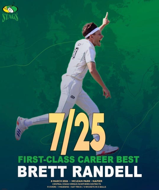 A few days ago, Central Districts quick Brett Randell became the first to take five wickets in five balls in First Class history and then went one further to become the first to take six wickets in eight balls, too.
